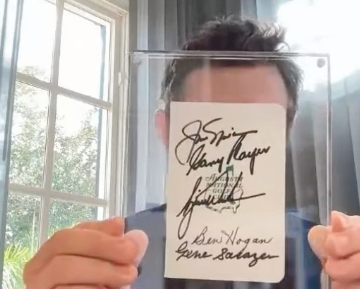 McIlroy briefly showed a gift he received from caddie Harry Diamond after winning the Masters and career Grand Slam. It features signatures from the five previous career Grand Slammers—Sarazen, Hogan, Nicklaus, Player, Woods—on an Augusta National scorecard. Diamond had the piece encased in glass and McIlroy said he has no plans to take it out and add his name. “I just hope I don’t have to get Scottie to sign it next year,” McIlroy joked of the World No. 1 who could become the seventh by winning the U.S. Open.